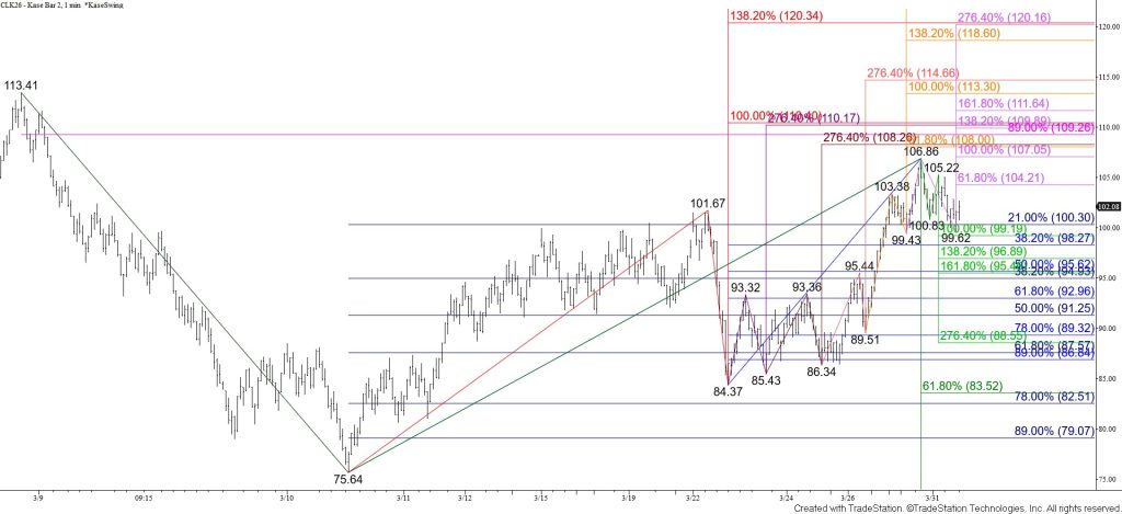 Nevertheless, even in the case that the pullback from $106.86 extends, the move down is likely a correction of the broader uptrend. There is a modest chance for a test of the $104.2 smaller than (0.618) target of the wave up from $99.43 early Wednesday. This is also in line with the 62 percent retracement from $106.86. Overcoming $104.2 will imply that the corrective pullback is complete. In this case, look for a test of $107.5, a close above which will put the near-term odds back in favor of May WTI rising to challenge the highly confluent $110.2 threshold.